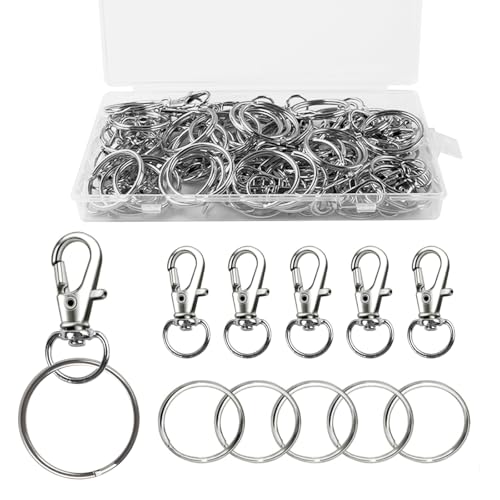100 Stycken Nyckelringsset, Nyckelringar i Rostfritt Stål Med Plasthölje, 50 St Nyckelring Karbinhake Och 50 St 28 Mm Nyckelringar, Nyckelringar Gör Det Själv För Dekorativa Hängen