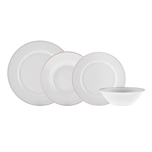 Karaca Middle Streamline 12 delar ny generation benvitt guld porslinsset för 4 personer, mattallrikar, sidoplattor, soppskålar, nya ben, dagligt och speciellt porslinsset