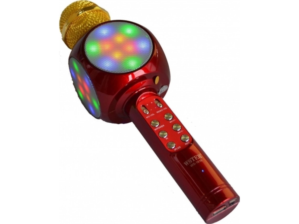 Goodbuy Led 360 Karaoke-Mikrofon Med Högtalare Bluetooth | 5W | Aux | Röstmodulator | Usb | Micro Sd Röd