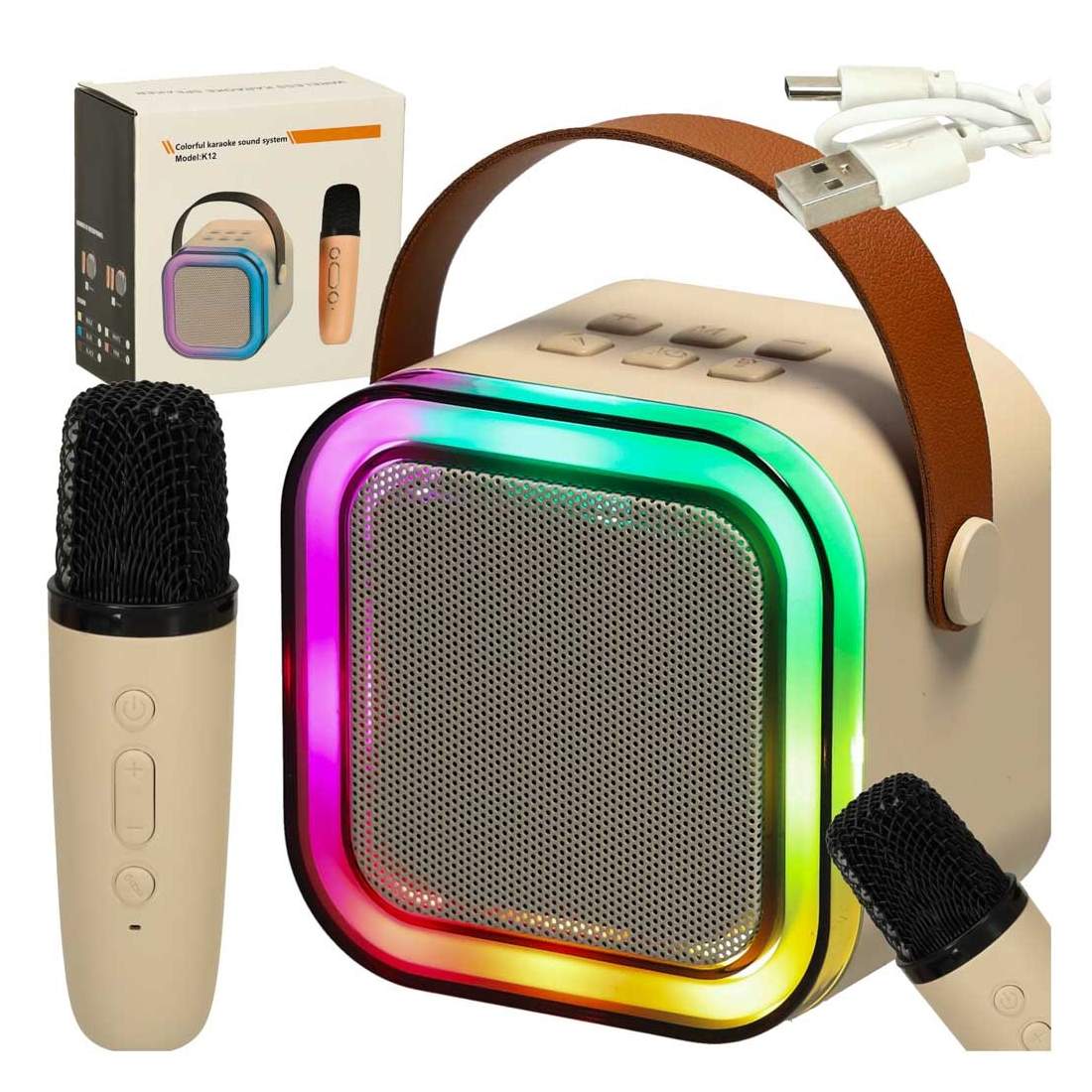 Extralink Kids Mini Karaoke Led-Högtalare 2X Mikrofon Beige | För Karaoke | Högtalare, 2X Mikrofon, Bluetooth, Aux, Minneskortplats, Rgb-Belysning