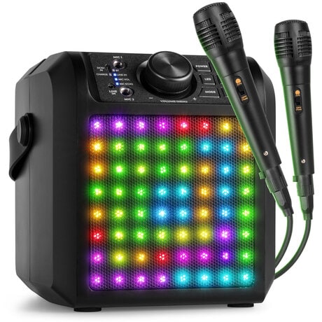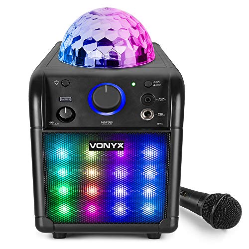 Vonyx Karaoke maskin - Batteridriven högtalare med mikrofon SBS50B-PLUS med inbyggt ljus SBS50B-PLUS Karaoke Set svart färg, med inbyggt LED discoljus-effekt