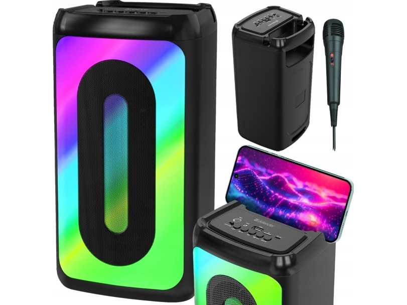 Defender Speaker Defender Concerto Bluetooth 20W Mp3/Fm/Sd/Usb/Aux/Tws/Led/Mic Karaoke Svart + Mikrofon