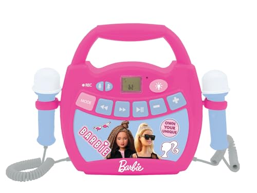 Lexibook, Barbie, Bärbar karaoke digital spelare för barn, Mikrofoner, Ljuseffekter, Bluetooth®, Inspelnings- och röstväxlingsfunktioner, Rosa, MP320BBZ