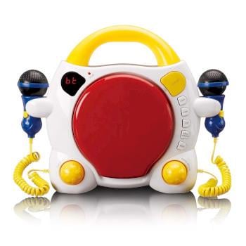 DYNASONIC - Bärbar Karaoke-maskin med 2 mikrofoner, Bluetooth-högtalare, ljus, USB- och SD-spelare, present till barn 5–13 år