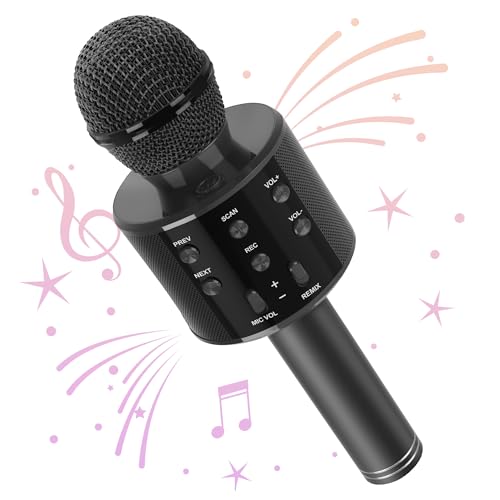 Wowstar Trådlös mikrofon, karaoke Bluetooth-mikrofon för barn vuxna, bärbar leksak, karaokemikrofon, högtalarmaskin, hem KTV-spelare, stöder Android- och iOS-enheter för festsång (svart)