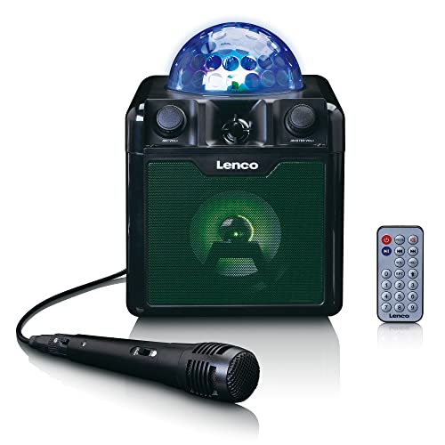 Lenco BTC-055 karaoke system – Bluetooth-högtalare – ljuseffekter – integrerat batteri – USB-ingång – micro SD-kortläsare – mikrofon – fjärrkontroll – svart, BTC-055BK