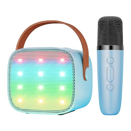 BONAOK karaokemaskin leksak för vuxna och barn, bärbar Bluetooth karaokemaskin med ljus, uppladdningsbar trådlös karaoke musikspelare, present till barn, trådlöst karaoke högtalarsystem för fest (blå)