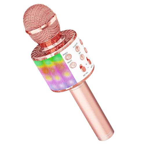 DYNASONIC Bluetooth Karaoke-mikrofon, leksaker för pojkar och flickor Bärbar trådlös karaoke-mikrofon med LED-lampor för barn, originella gåvor för barn (guld)