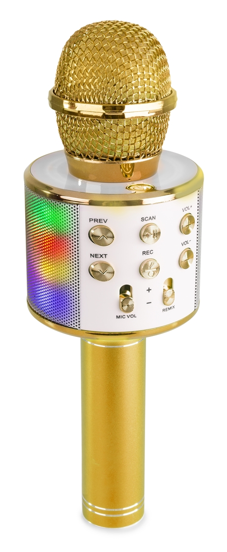 MAX KM15G Karaokemikrofon med inbyggda lysdioder, högtalare, Bluetooth och MP3 - Guld, Karaokemikrofon MAX KM15G med inbyggd högtalare