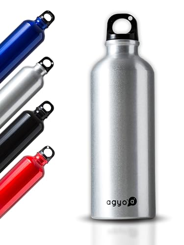 IPEA Ultratunn termisk vattenflaska i aluminium - 500 ml - Icke-termisk metallflaska för drycker och sport att ta med på resor, utomhus, arbete, kontor, skola - med karbinhake - Silver