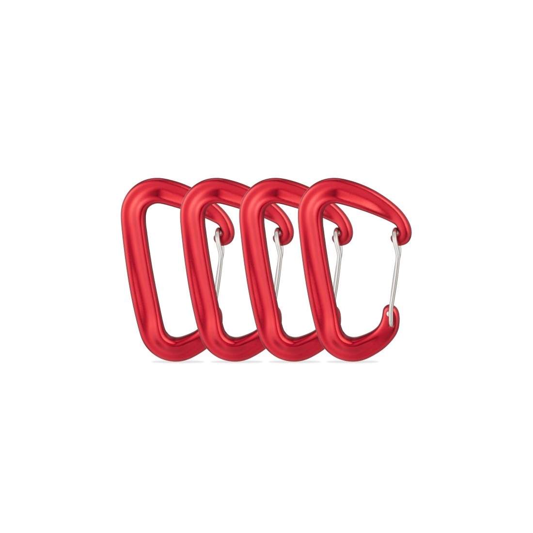 Relaxdays karbinhake aluminium set om 4, utomhus, kraftig karbinhake 1 700 kg, ryggsäck, nyckel, hängmatta, röd