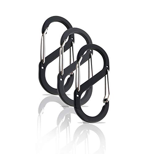 S Karbinhake 3-pack - Stor karbinhake - Nyckelring av aluminium - Svart karbinhake - Karbinhake med dubbel öppning - Karbinhake stor - Karbinhake för utomhusbruk - Carabiner (88x40 mm, Svart)