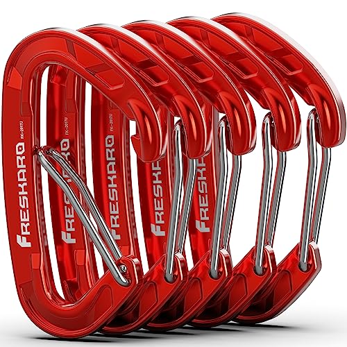 FresKaro Karbinhake, nyckelhållare karbinhakar, aluminium muskett, 8kN karbinhake, solid ring clip-musketon, ultrastark, för nyckel, ryggsäck, utomhusvandring, liten mini 6 cm, röd