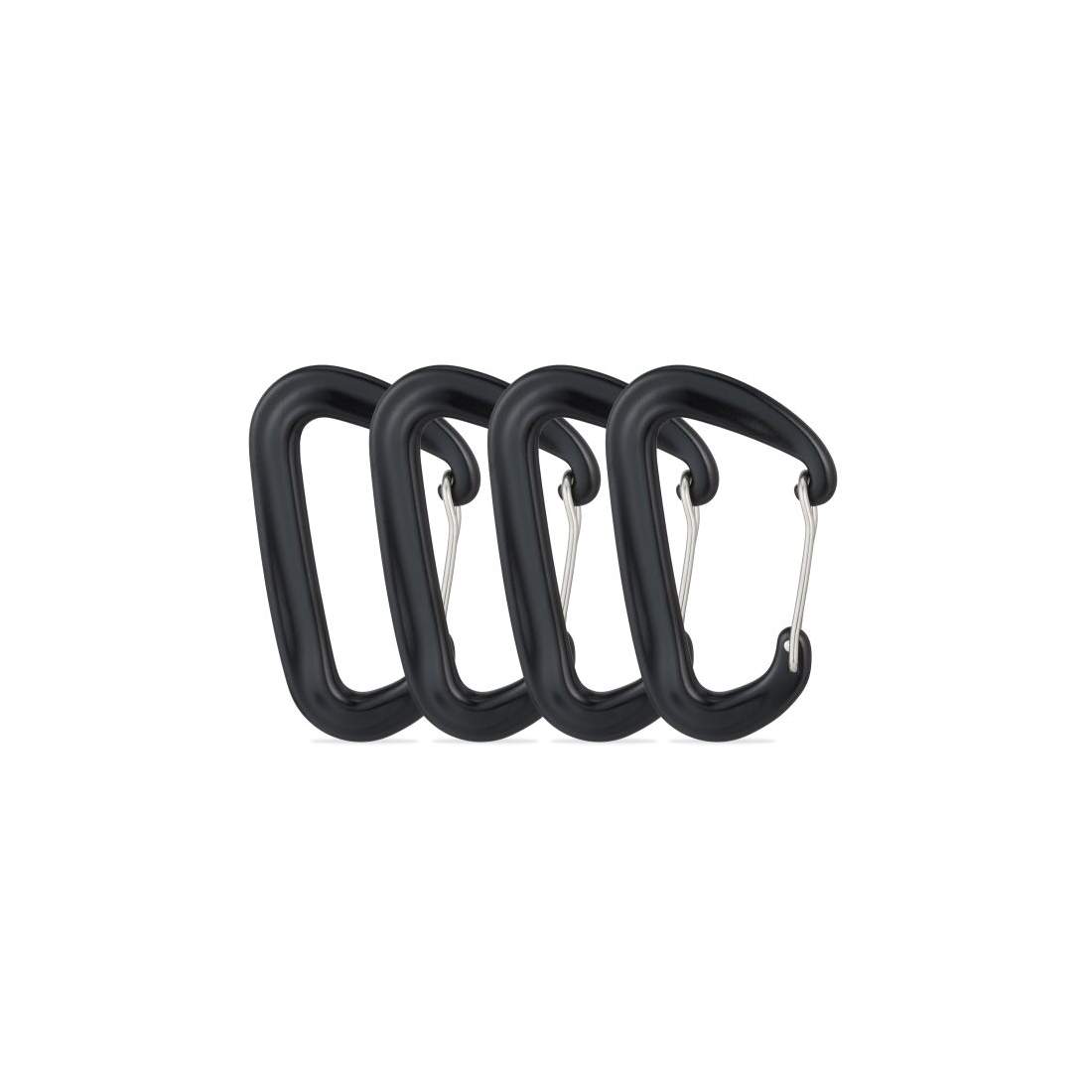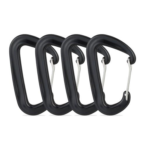 Relaxdays karbinhake aluminium set om 4, utomhus, kraftig karbinhake 1 700 kg, ryggsäck, nyckel, camping, svart