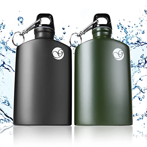 Uppsättning av 2 dricksflaskor utomhus av aluminium 0,5 liter, reseflaska med karbinhake, läckagesäker och fri från skadliga ämnen