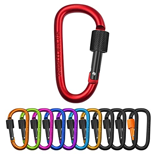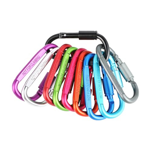 Karbinhake – karbinhake – karbinhake – 10-pack mini karbinhake i aluminium med skruvlock och fjäderklämma – perfekt för camping – fiske – vandring eller resor (flerfärgad)