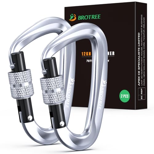 Brotree Karbinhake 12KN Lätt Stark Klämmor Aluminium D-Typ för Utomhusbruk, Camping, Hängmatta, Hängmattor (2 eller 4 Förpackningar)