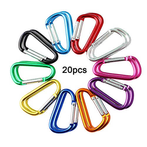 QitinDasen 20 delar D-formad multifunktionell aluminium karbinhake nyckelkedja, 5 cm mini karbinhake nyckelring snäppkrok (inte för klättring)