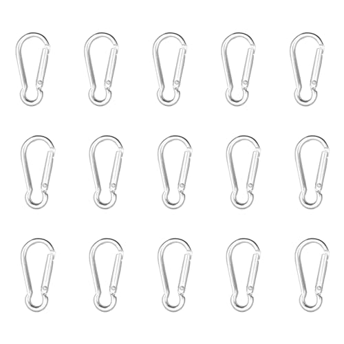 COACOM 15 stycken karbinhakar, tråddiameter 4 mm svart eller silver karbinhakar liten, mini karbinhake, robust aluminium-karbinhake, för camping, vandring, resor och mer