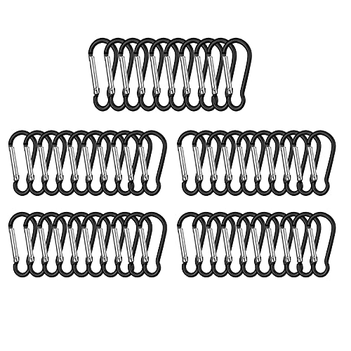 Floatdream 50 Aluminium Karbinhake med Nyckelring, För Resor, Ute, Camping, Vandring, Fiske, Cykling (Svart)