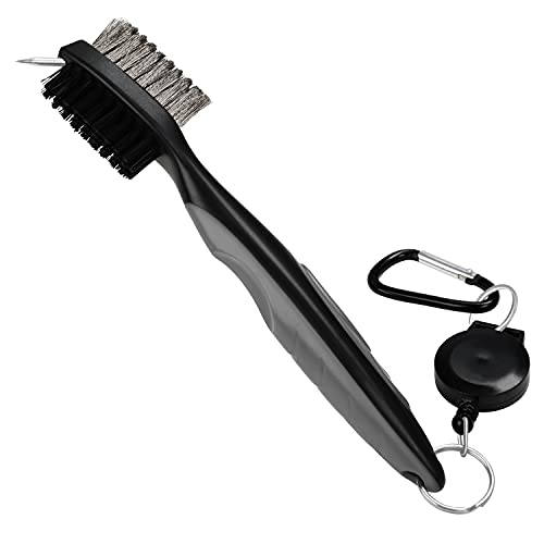SENHAI 3 delar golfklubbsborstar spårrengörare, metall och PP borst spik rengöringsverktyg, med 2 fot infällbar dragkedja aluminium karbinhake, fästs enkelt på golfväskan