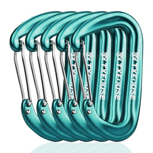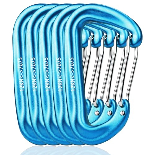Txeouse Karbinhake, 5 st klätterkarbinhake 7075 ultralätt aluminium 12 kN (1 200 KG), D-formad karbinhake i aluminium för hängmatta, camping, backpacking, vandring (blå)