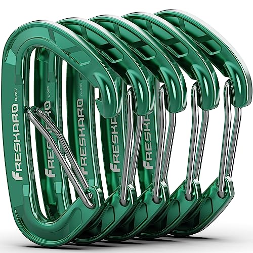 FresKaro 5-pack karbinhakar, karabinaklämma Medium Duty, aluminium Karbinhake Liten Robust, Snabbfrigörande Fjädersnäpp, 8 kN 816 kg, för nyckelring Camping, flaskhållare, Mini, Grön