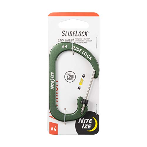 Nite Ize SlideLock Karbinhake Aluminium, Storlek #4, Oliv