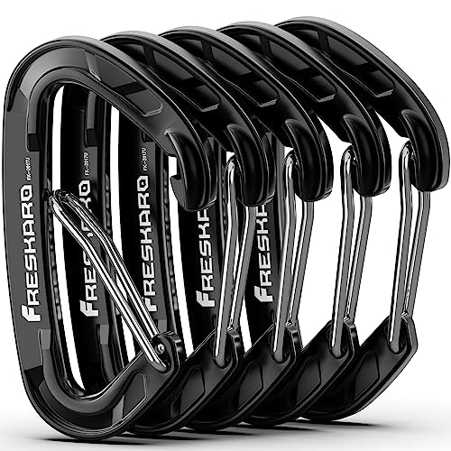 FresKaro Karbinhake, enkla och stora karbinhakar, aluminium muskett, 8 kN-816 kg, musketton, solid, multifunktionell för nyckel, nyckelhållare, ryggsäck, utomhus, vandring, liten, mini 6 cm, svart