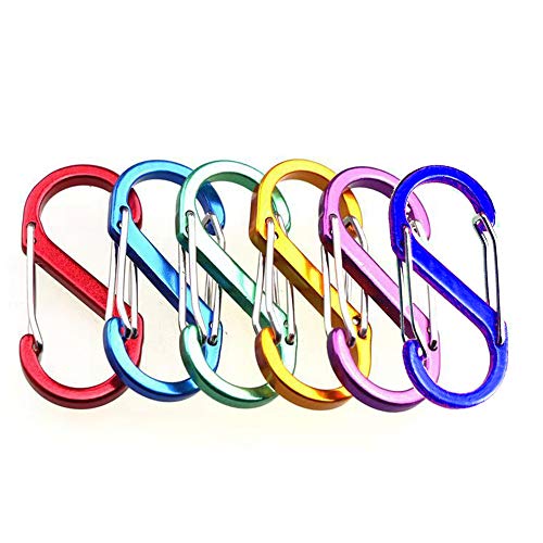ABCOOL 6 st S-formade dubbla klämmor mini karbinhake – nyckelring aluminium hållbar snabbfrigörande automatisk låsning vajer klämma för hem, husbil, camping, fiske, vandring, resor och sport utomhus