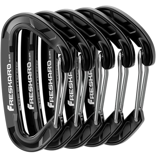 FresKaro Karbinhake, enkla och stora karbinhakar, aluminium muskett, 8 kN-816 kg, musketton, solid, multifunktionell för nyckel, nyckelhållare, ryggsäck, utomhus, vandring, liten, mini 6 cm, svart