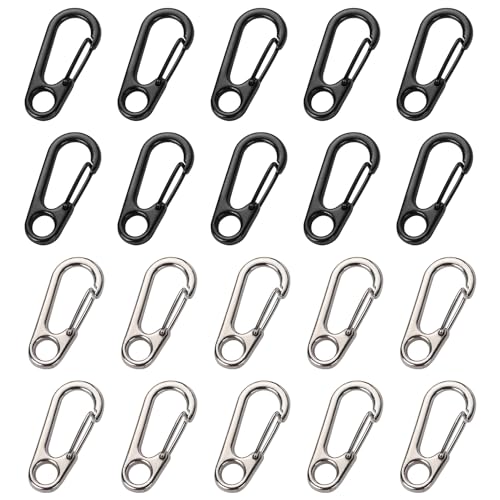 NYGGTYK 20 stycken karbinhake av aluminium, nyckelring, resekrok, mini-formad karbinhake, aluminiumfjäderkrokar, karbinhakar med skruvlock (svart, vit).