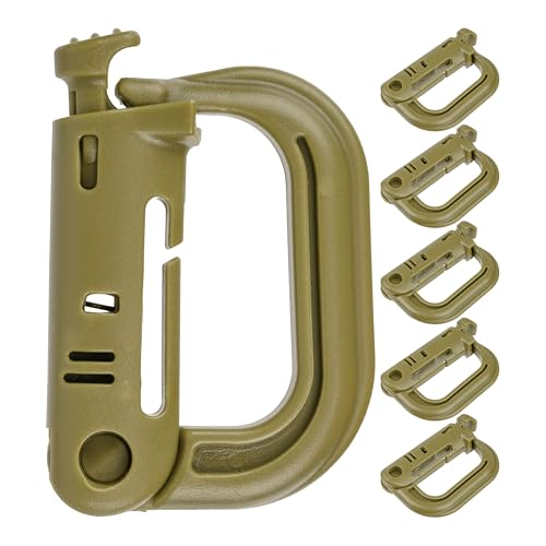 Karbinhake, 6 st, D-formad, av plast, i grönt, Molle-karabinhake för taktisk utrustning, bälte, ryggsäck, nyckelring, karbinhake av plast, bältesklämma, ABS hängkrokar för utomhusbruk