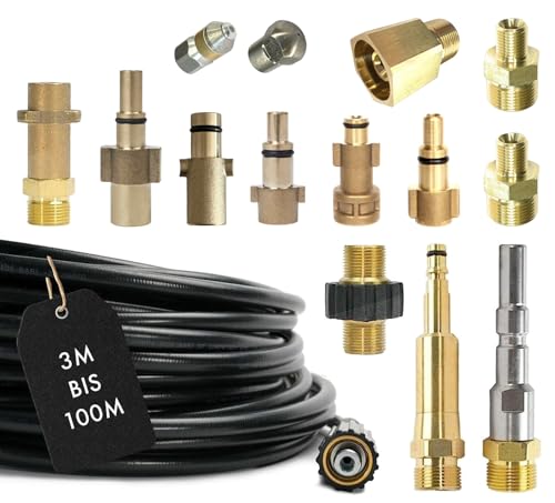 Rörrengöringsslang 15 delar för Kärcher Kränzle NILFISK ALTO WAP HD HDS Parkside Black & Decker Bosch Lavor KEW Kinzo anslutning 1/8 tum AG M22 x 1,5 IG & bajonett KEW Quick Connect EASY! Lock 30 m