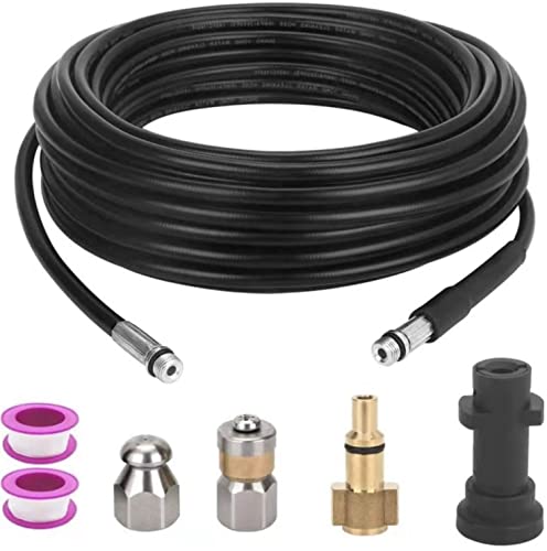 YUET 20M Pressure Washer Hose Cleaner 400 BAR 5800 PSI with Adapter Flexible Tube Unblocker With Jet Nozzle Rotating for Karcher High Pressure Washers Kärcher K2-K7 Series and LAVOR