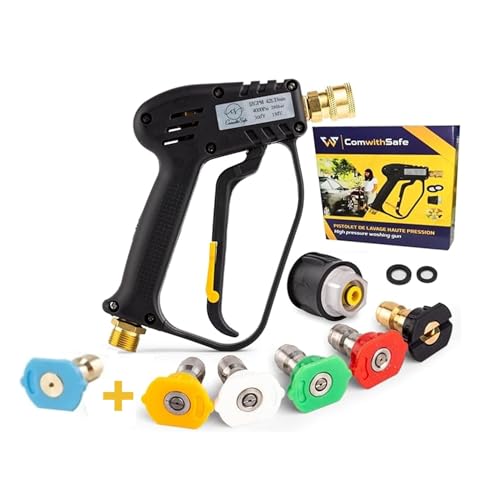 ComwithSafe Högtryckstvätt pistol 4000 PSI och 6 munstycken snabbkoppling - biltvättpistol - M22 (14 mm) gränssnitt, kompatibel Kärcher K1-K7-adapter, 2 vattenfilter och guide ingår