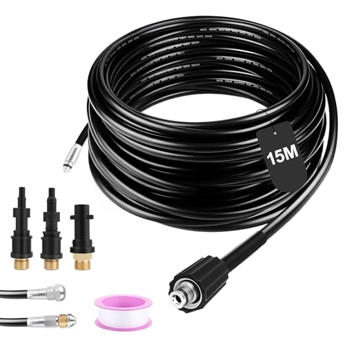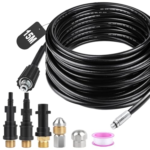 MUUKAIII 15M rörrengöringsslang för högtryckstvätt, universellt rörrengöringsslangsats, högtryckstvättrör 180bar 60 °C, kompatibel med Kärcher k2-k7 högtryckstvätt