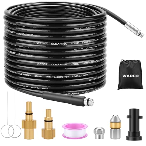 WADEO Rörrengöringsslang 20 m 180 bar/2610 PSI rörrengörings-set, lämpligt för högtryckstvätt Kärcher k2-k7