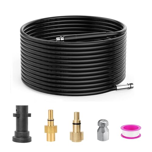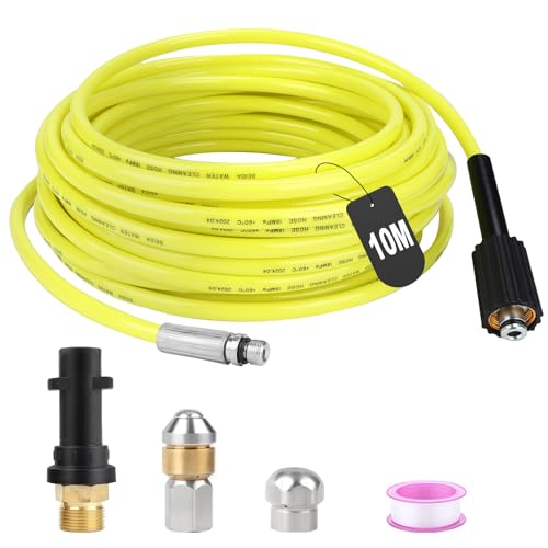 YUET 10M Pressure Washer Hose Cleaner 400 BAR 5800 PSI with Adapter Flexible Tube Unblocker With Jet Nozzle Rotating for Karcher High Pressure Washers Kärcher K2-K7 Series and LAVOR