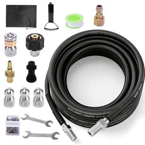 Rörrengöringsslang 15 delar för Kärcher Kränzle NILFISK ALTO WAP HD HDS Parkside Black & Decker Bosch Lavor KEW Kinzo anslutning 1/8 tum AG M22 x 1,5 IG & bajonett KEW Quick Connect EASY! Lock 50 m