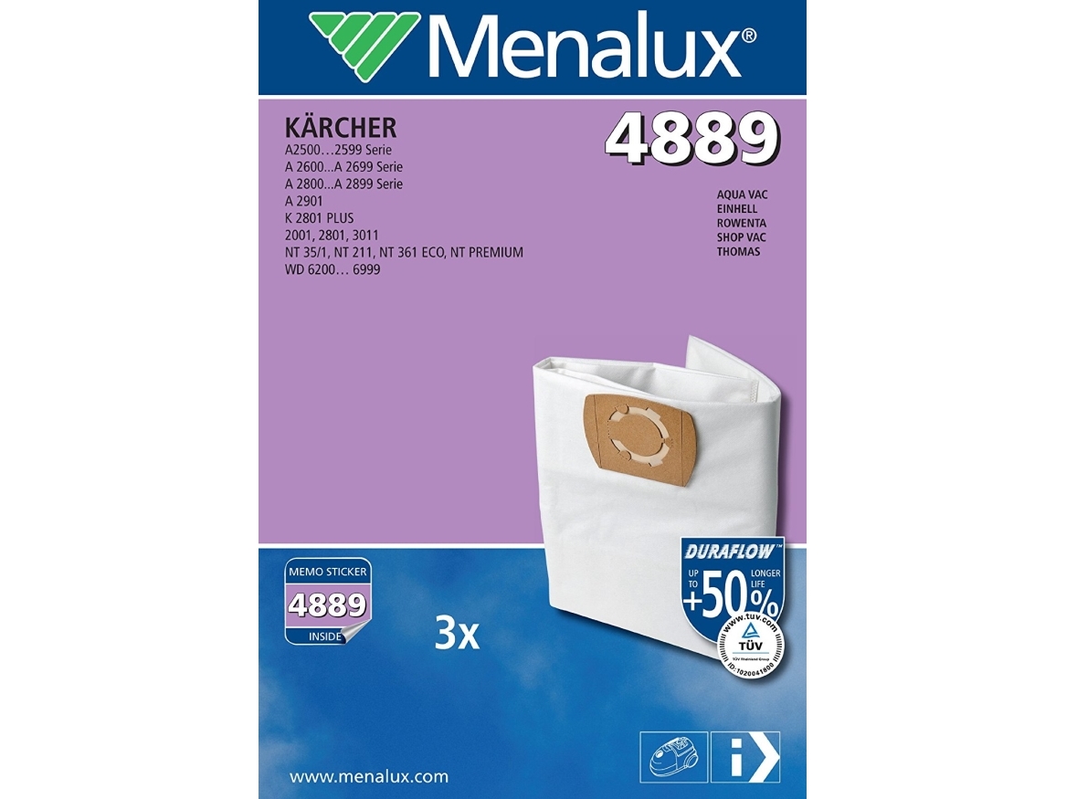 Menalux 4889, Dammpåse, Universal, 30 L, Kärcher: - 2801 / Plus - 2001, 2801, 3011 - A 2500…2599 - A 2600…2699 - A 2800…2899 - A...