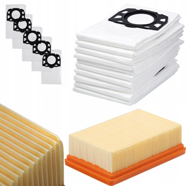 VacPro KärcherSet MV-WD – 5 mikrofiberpåsar och luftfilter | 5-lagers filtrering | Ersättningsdel för Kärcher WD2 WD3 MV2 MV3 2.863-005