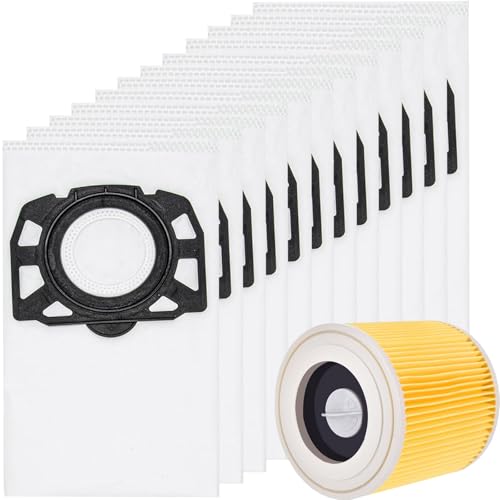 Awinker 12 dammsugarpåsar och 1 filter för Kärcher KFI 357, WD2, WD 2 Plus, WD 3, KWD 1-3, SE 4001, SE 4002 dammsugare reservdelar 2.863-314.0 (13)