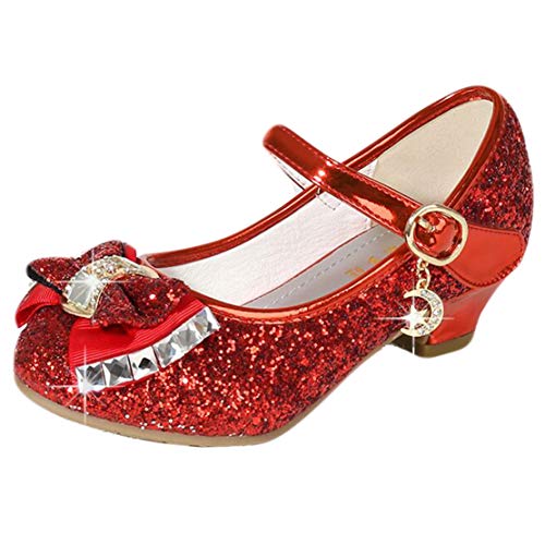mama stadt Prinsesskor för flickor, glitterskor för barn, högklackade skor, paljetter, cosplayskor, för fester, bröllop, kardborreband, sandaler, eleganta flickskor med klack, röd, 28 EU