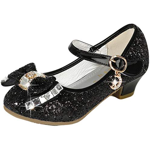 mama stadt Prinsesskor för flickor, glitterskor för barn, högklackade skor, paljetter, cosplayskor, för fester, bröllop, kardborreband, sandaler, eleganta flickskor med klack, svart, 30 EU