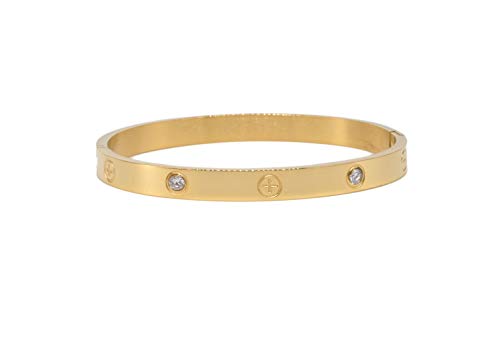 Lyxigt guldpläterat rostfritt stål med CZ sten enkel stil kärlek armband för kvinnor män (guld storlek 16 cm), 16 cm, Kubisk zirkonia, Cubic Zirconia