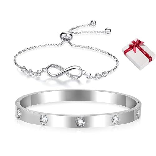 Armband dam silver, 4 mm titanstål armband-armband dam silver oändlig kärlek armband med låda present till kvinnor mamma mamma, 18 Zentimeter, Rostfritt stål, Ingen ädelsten