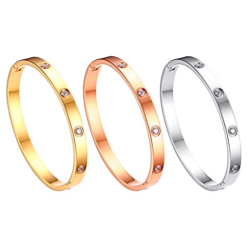 RIXERKOC 18k guldpläterad kärlek vänskap armband med kubisk zirkonia stenar armband för kvinnor män rostfritt stål armband för kärlek par smycken armband presenter, 52*62mm, Rostfritt stål, Cubic
