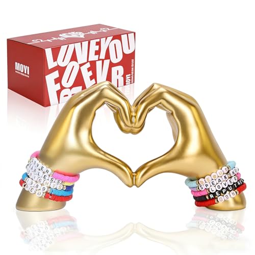MOYI Gulddekor för vardagsrum sovrum bokhylla kaffebord, hjärta händer staty hylla dekor, kärlek finger estetisk boho bröllop accenter dekorationer, Knick Knacks heminredning för hyllor (inga armband)