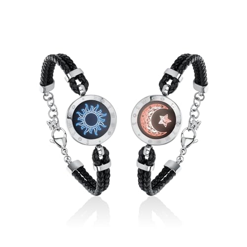 TOTWOO Taktila armband för par, långdistans smarta armband för par, årsdagspresent, kvinnliga armband, kärlek, långdistans touch-armband för kärlekspar, Ajustable, Läder